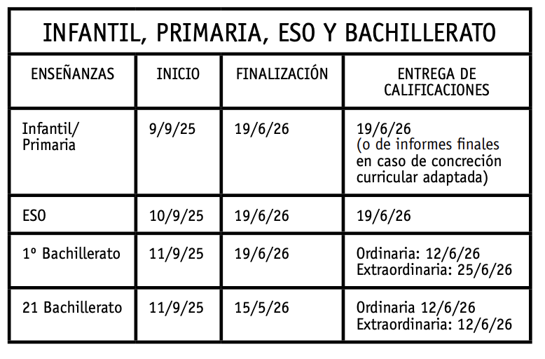 La Consejería de Educación ha publicado ya el calendario escolar y las instrucciones para la organización y desarrollo de las actividades de comienzo y finalización del curso 2025-2026 en los centros de la Comunidad Autónoma de Canarias.
