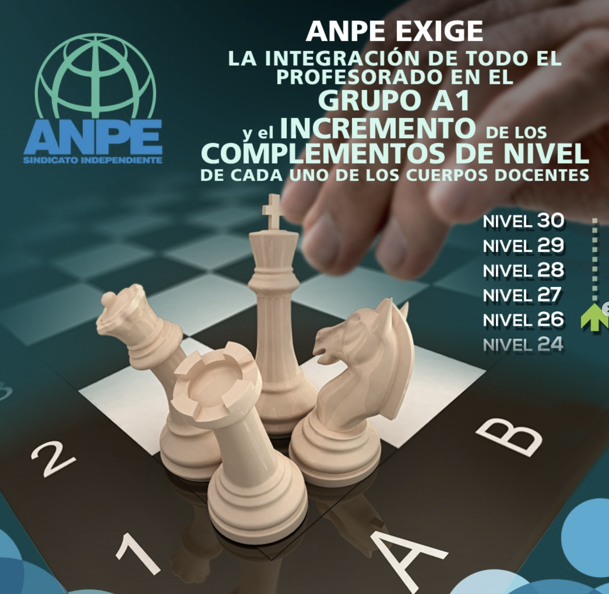 Desde ANPE, insistimos en la necesidad de que se complete la integración de la totalidad de los cuerpos docentes en el grupo funcionarial A1, así como de que se actualicen al alza los complementos de nivel retributivo que percibimos.