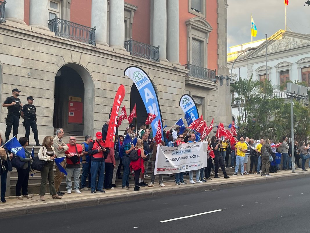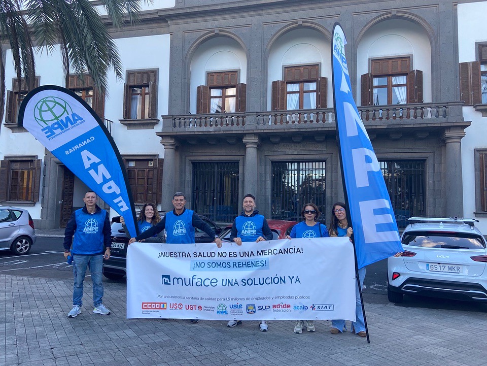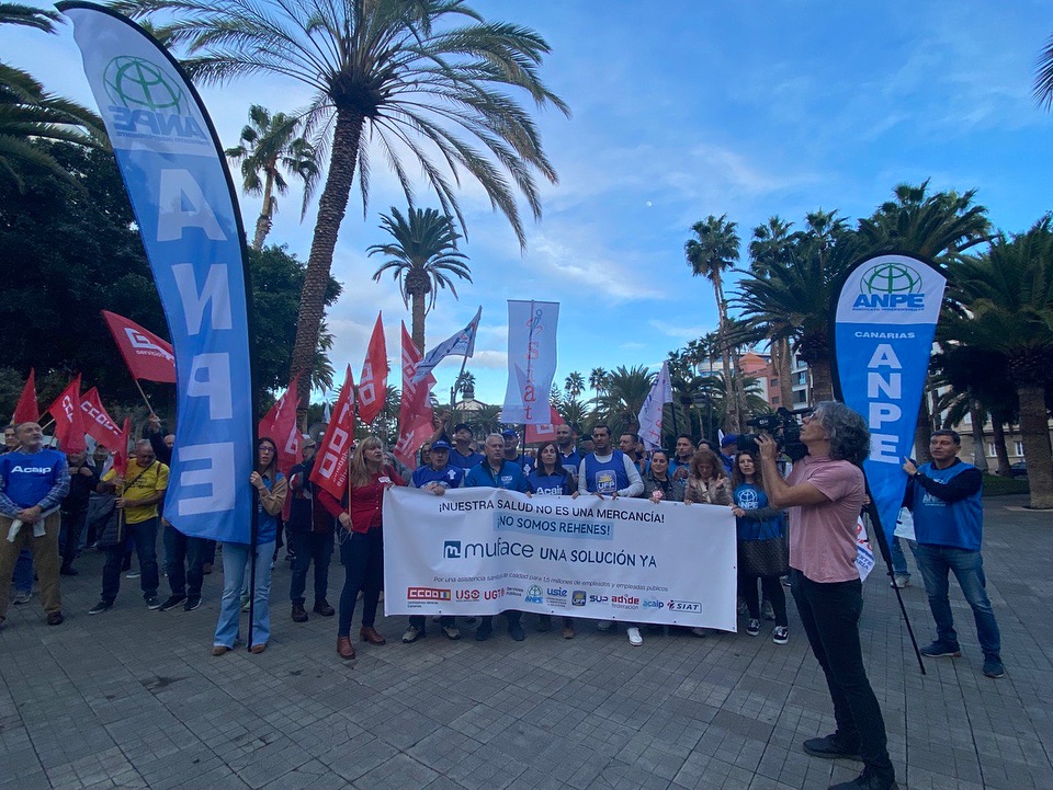 ANPE ha unido fuerzas con otros ocho sindicatos (CCOO, UGT, ADIDE, USIE, UFP, SUP, ACAIP y SIAT) para exigir que se concrete lo antes posible un acuerdo que garantice la asistencia y la calidad sanitaria al funcionariado y al colectivo docente. Fruto de ello han sido las concentraciones llevadas a cabo el día 11 de diciembre en todo el país, incluyendo las celebradas en las dos capitales canarias.